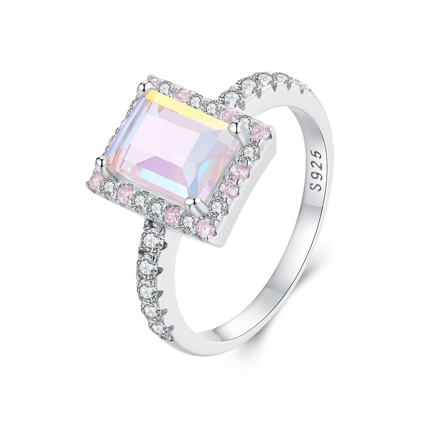 Inel din argint Pink Rectangle Crystal